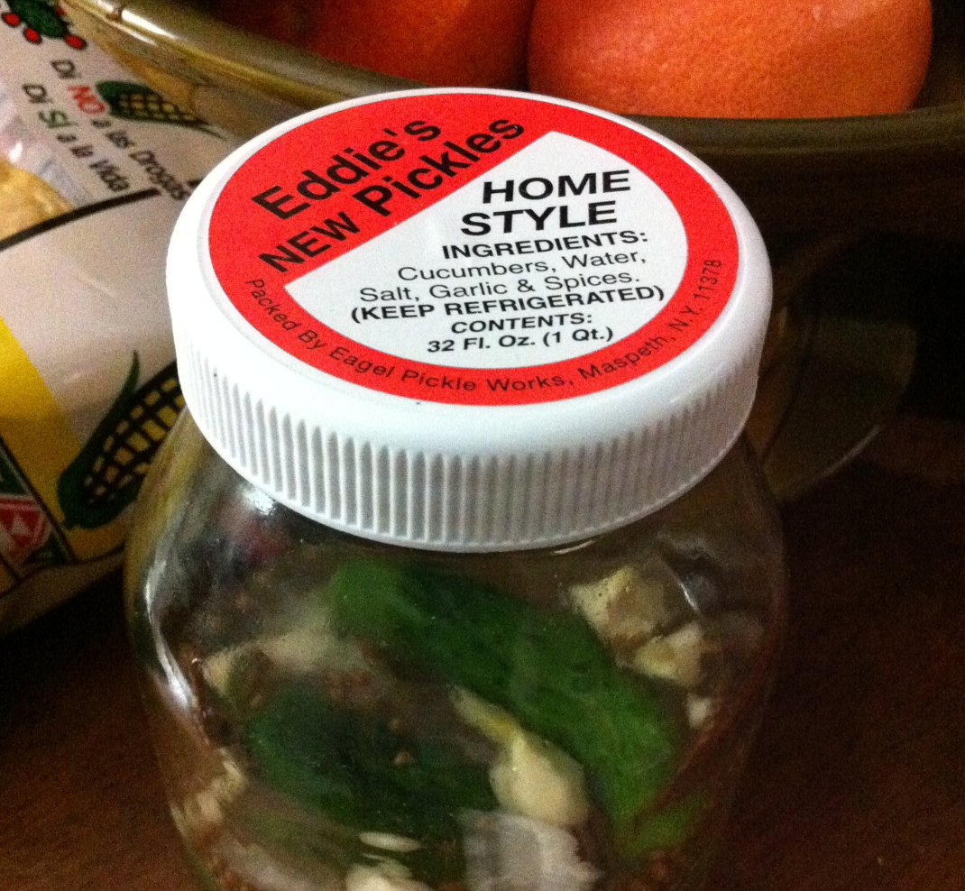 The classic tests of “New Yorkness” in the culinary sense: Pizza, Bagel, Pickle. So when I found Eddie’s Pickles for sale in a plain glass quart jar at Seneca Garden, I breathed a sigh of nostalgic familiarity.