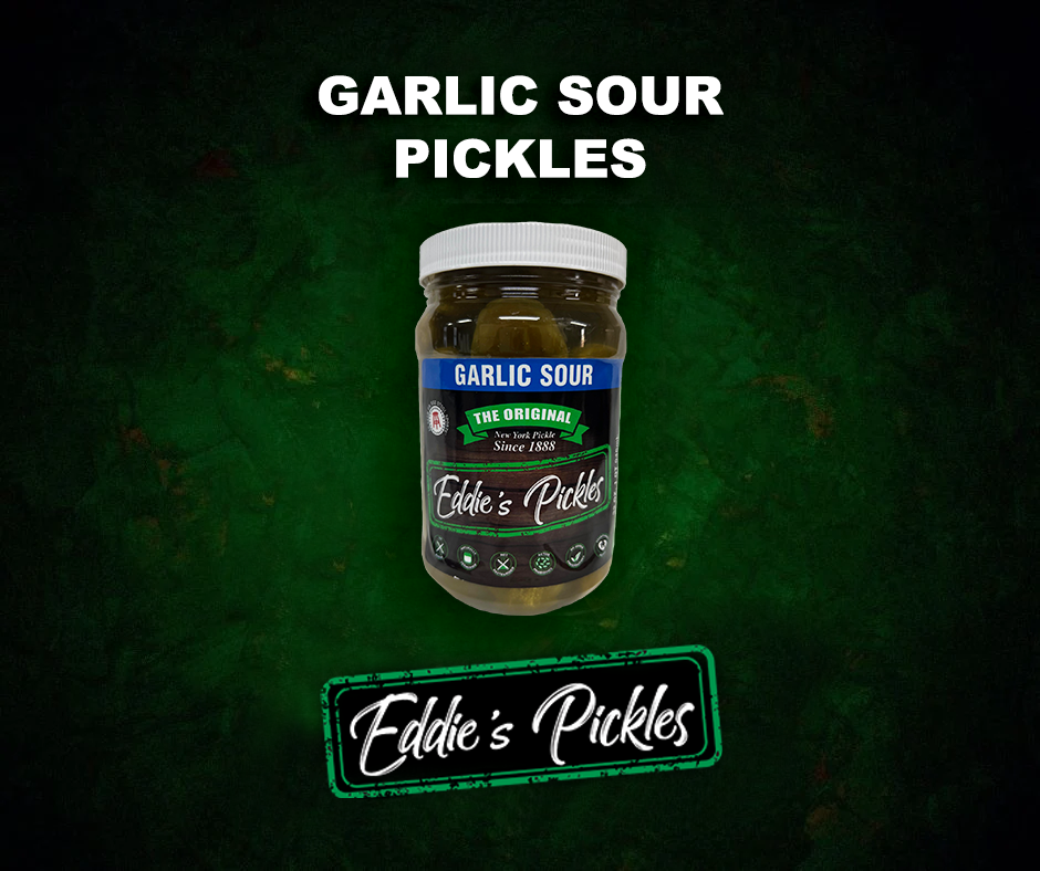 Garlic Sour Pickles. This extra-crunchy version of the classic takes heirloom garlic, fresh dill and a proprietary spice blend!